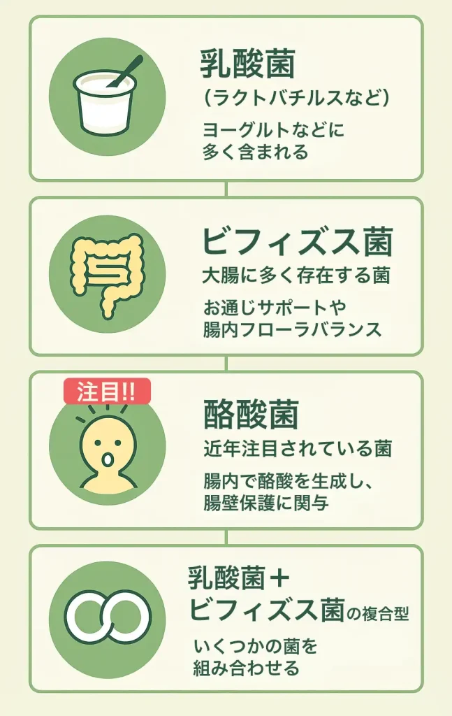 | 酪酸菌 | 近年注目されている菌 | 腸内で酪酸を生成し、腸壁保護に関与 |