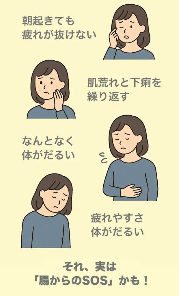 腸内環境が乱れると、栄養吸収・免疫・ホルモンバランスまで崩れ、体も心も不安定になってしまいます。